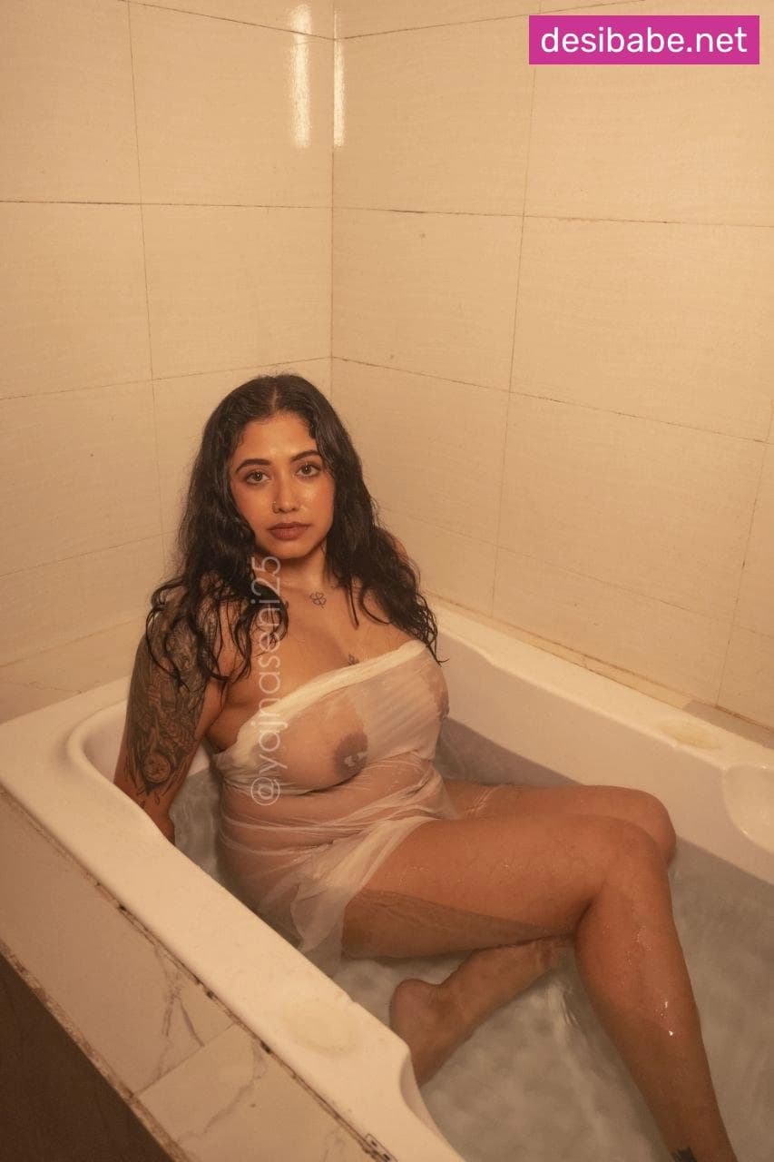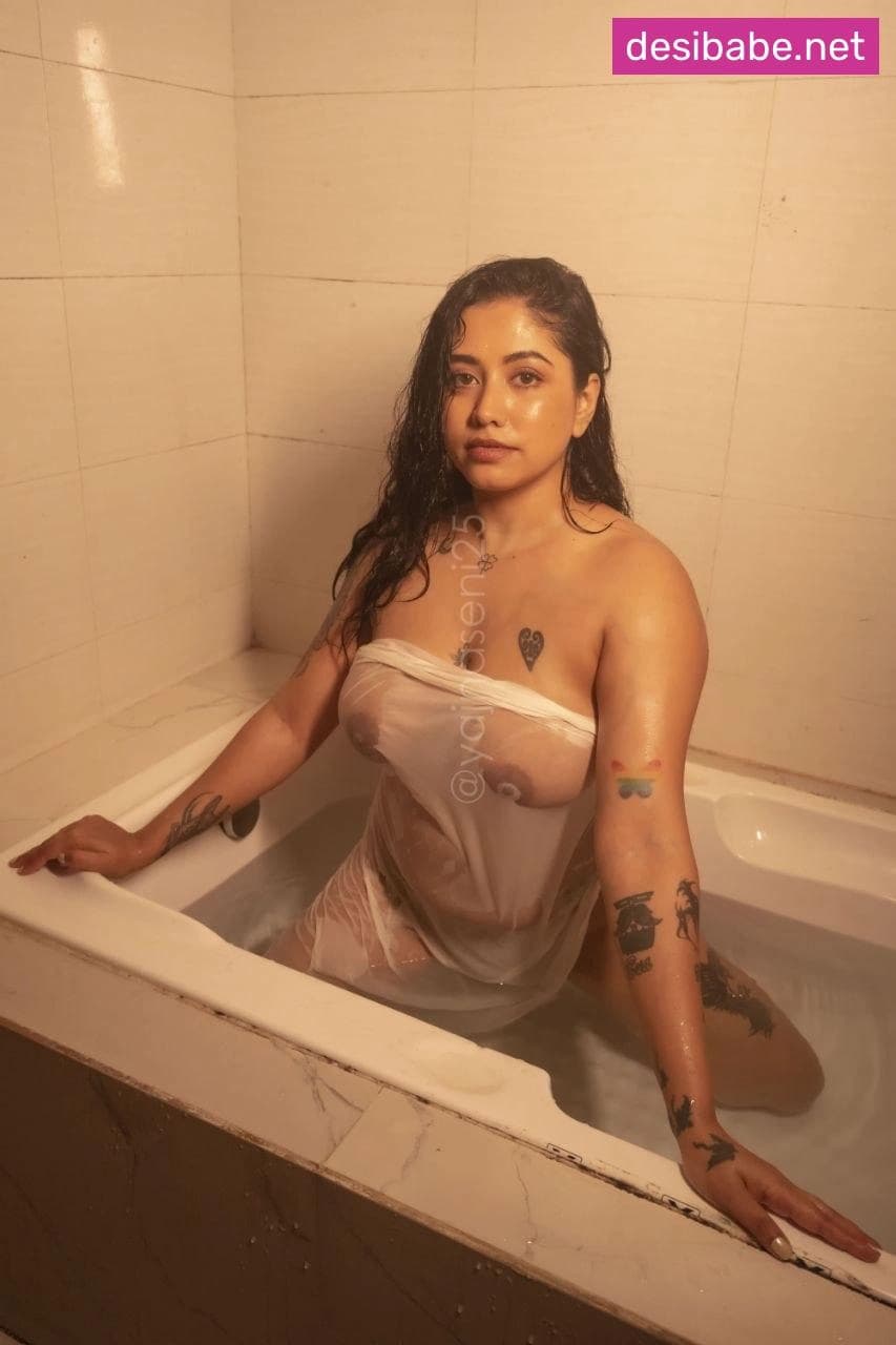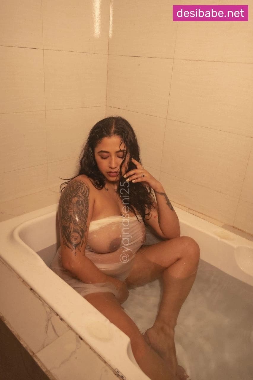 Yajna Seni Wet Bathtub Photoshoot Boobs Display Nude In See-Through