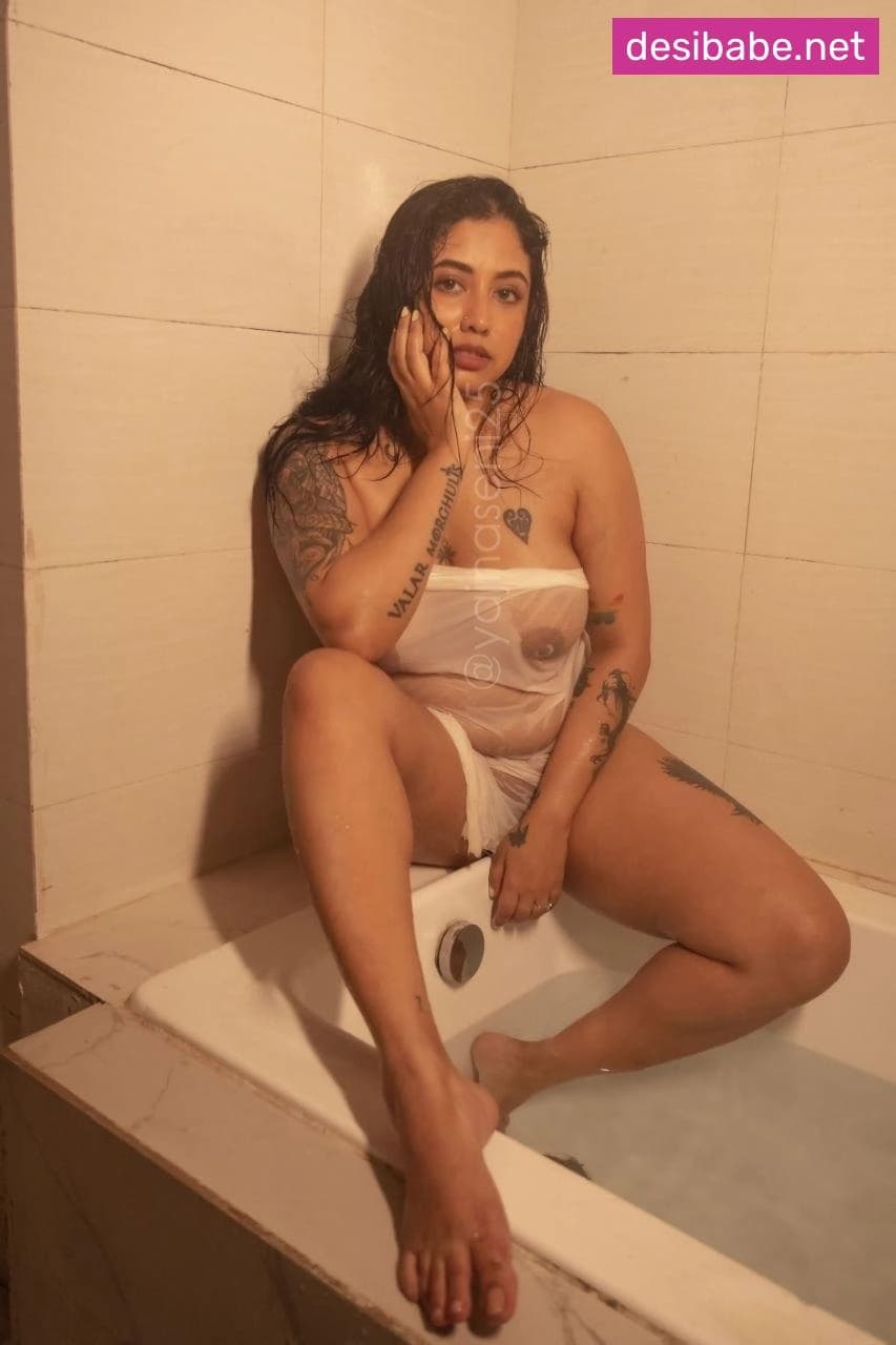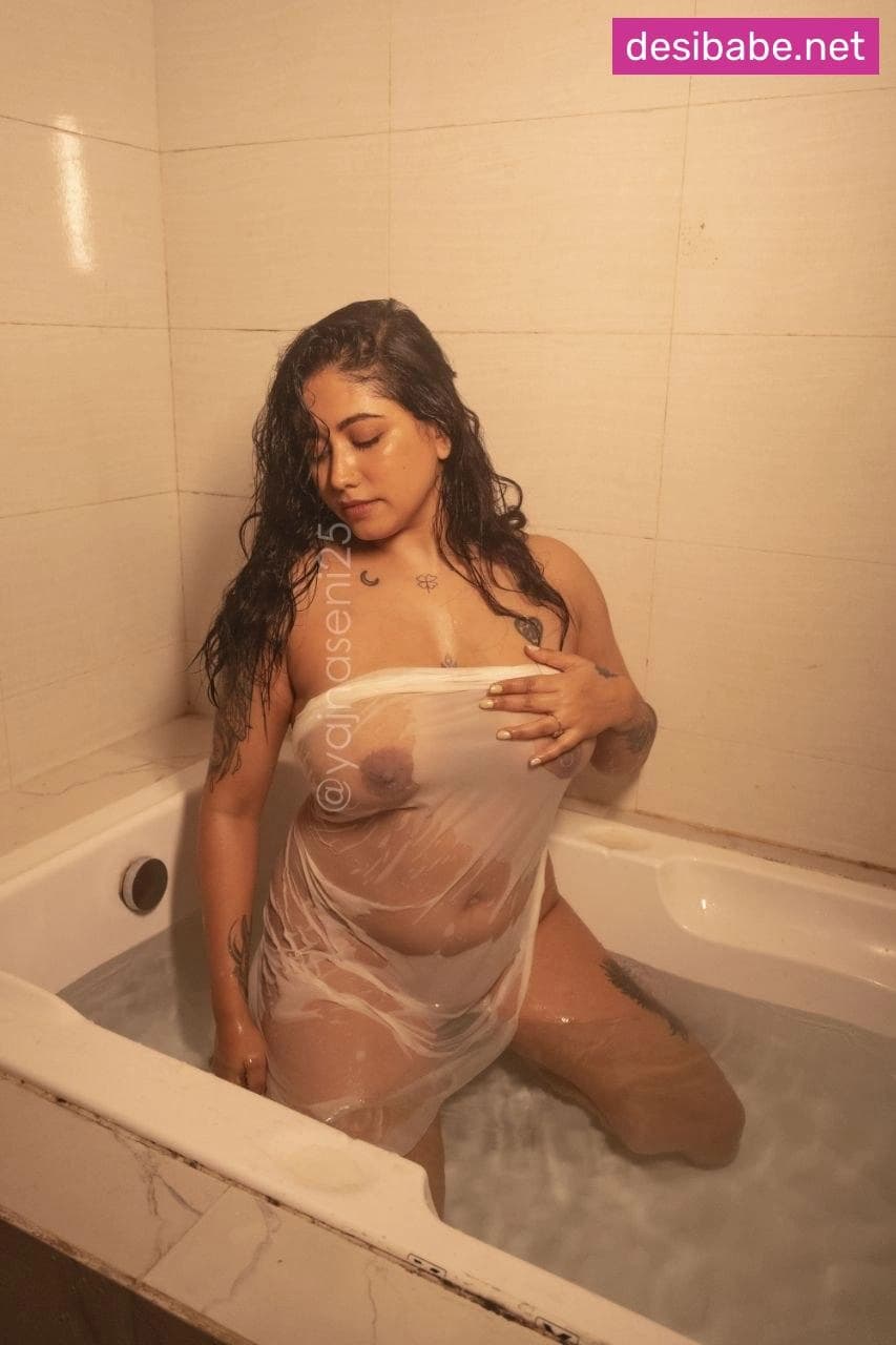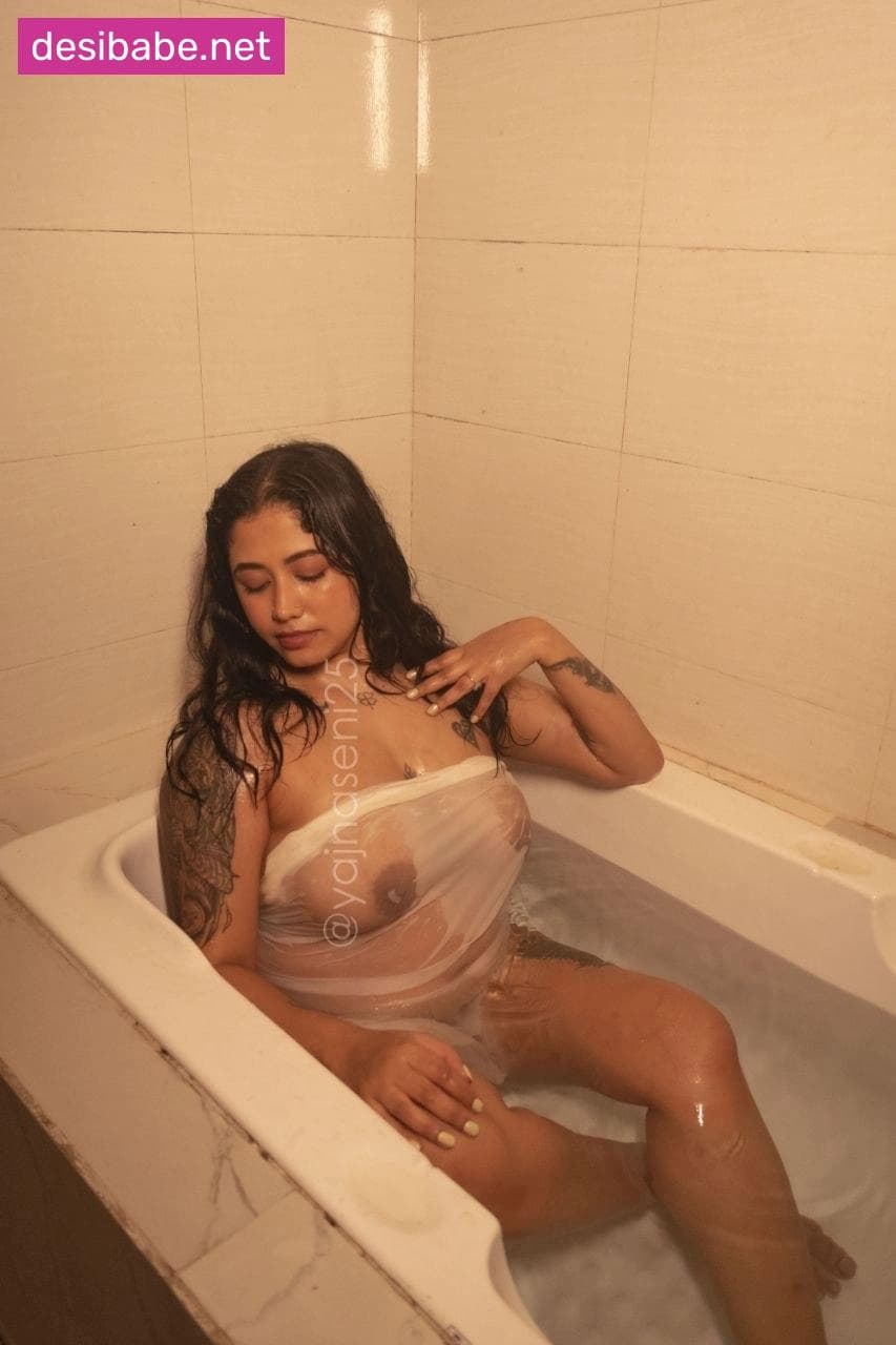 The famous model Yajna Seni is completely naked in this wet bathtub shoot, her big boobs on full display through the see-through water. She turns and arches her back, making her round ass glisten. The camera zooms in on her hard nipples as she splashes water over her perfect tits. She runs her hands down her stomach, teasing the camera. Watching her slick body and those juicy boobs bounce will make you rock hard.